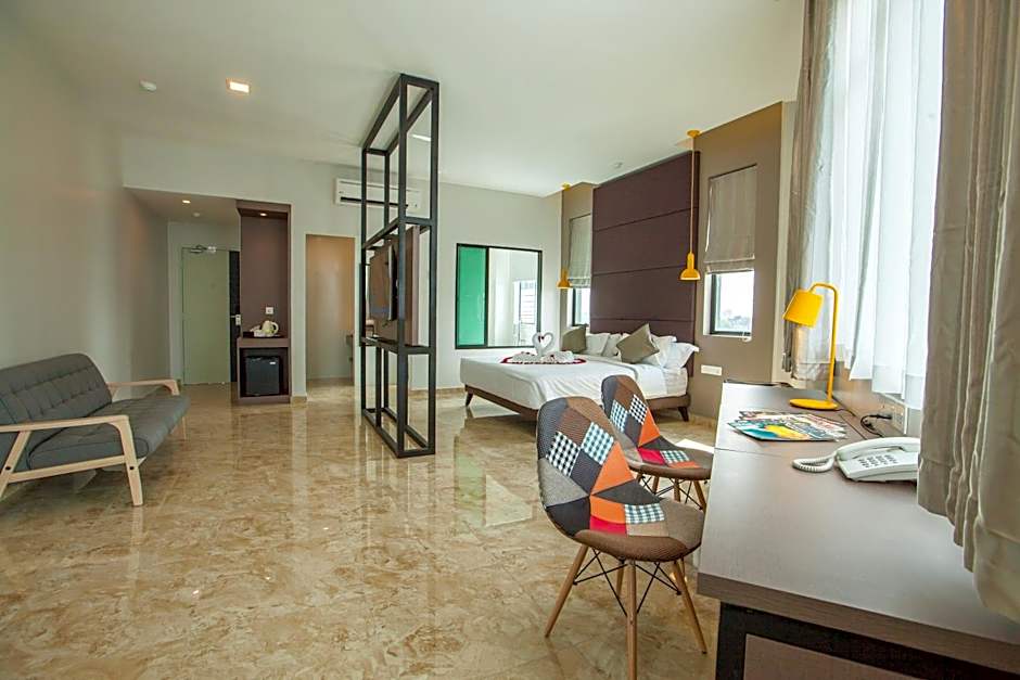 Travelers will find a practical, comfortable base in Skudai with a variety of room options such as Premier Queen, Deluxe King, and Family Suite, all reachable by a handy elevator for easy access between floors.